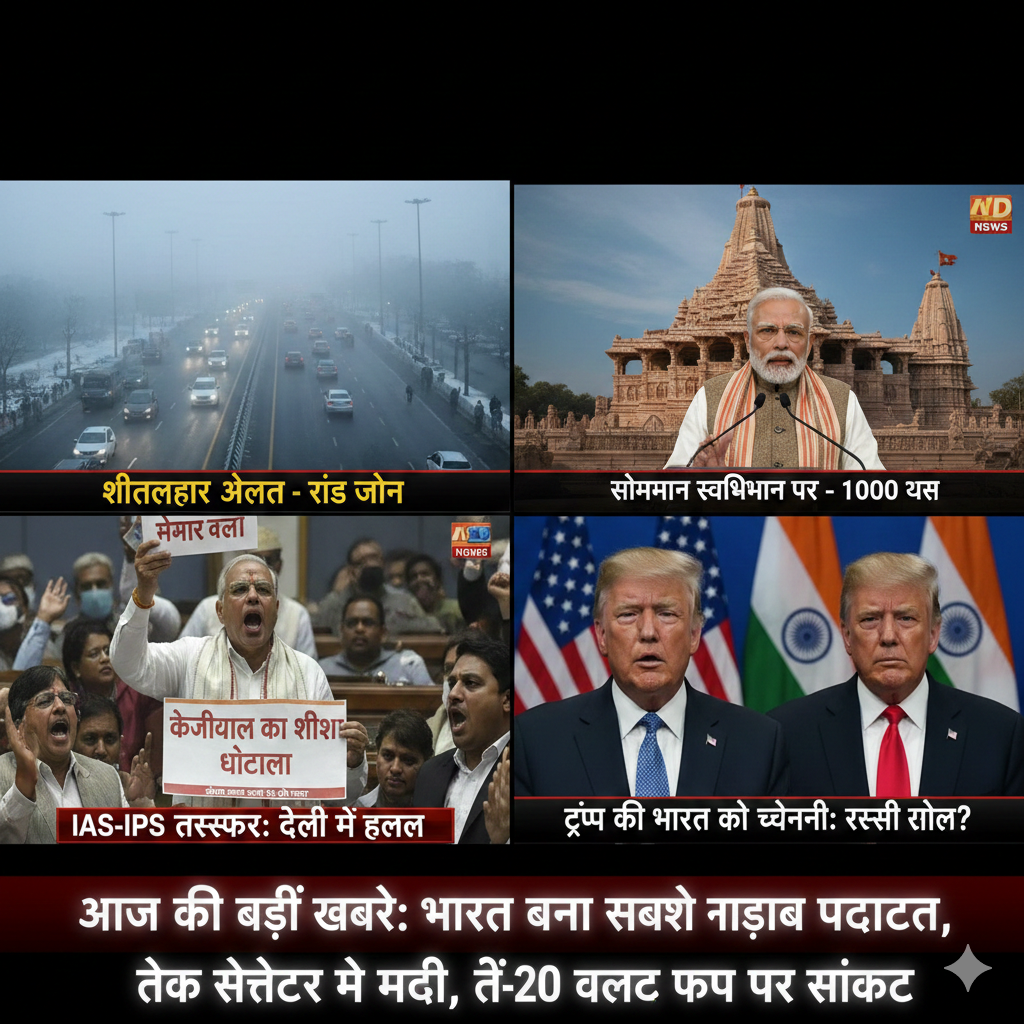 आज 5 जनवरी, 2026 को भारत के विभिन्न कोनों से कई ऐसी खबरें निकलकर सामने आ रही हैं, जो न केवल राजनीतिक गलियारों बल्कि आम आदमी के जीवन पर भी गहरा प्रभाव डालेंगी। उत्तर भारत में जहाँ शीतलहर (Cold Wave) और घने कोहरे ने रफ्तार पर ब्रेक लगा दिया है, वहीं राजधानी दिल्ली में प्रशासनिक फेरबदल की बड़ी सुगबुगाहट देखने को मिल रही है। प्रधानमंत्री नरेंद्र मोदी ने सोमनाथ मंदिर की अटूट आस्था के 1000 वर्ष पूरे होने पर देश को संबोधित करते हुए भारत की आध्यात्मिक शक्ति का परिचय दिया है। आज के इस विस्तृत न्यूज़ ब्लॉग में हम कवर करेंगे दिल्ली विधानसभा सत्र के हंगामे, उत्तर भारत के मौसम का रेड अलर्ट, कूटनीतिक मोर्चे पर भारत-अमेरिका संबंधों में नई चुनौतियां और खेल जगत की सबसे बड़ी सुर्खियां।