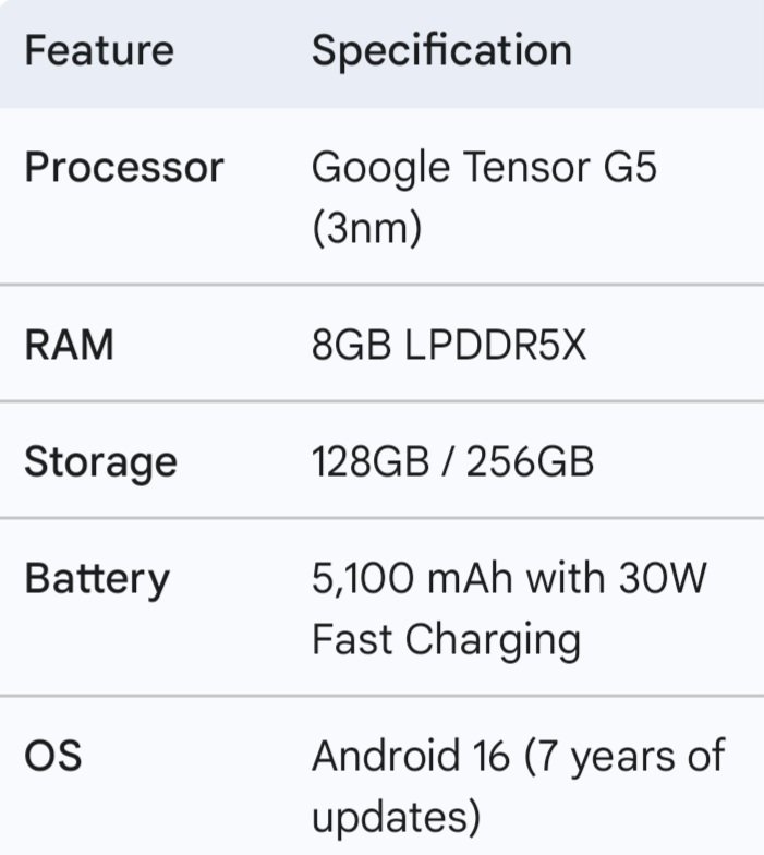 The most significant headline of the Google Pixel 10a launch is undoubtedly the processor. Unlike previous years where the A-series sometimes felt like a step behind, the Pixel 10a features the same Tensor G5 chipset found in the flagship Pixel 10 Pro.
