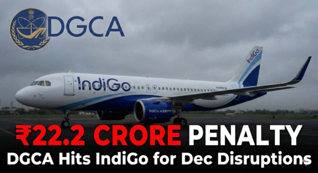 IndiGo Hit with Record ₹22.2 Crore Fine. The Directorate General of Civil Aviation (DGCA) has cracked down on India’s largest airline, imposing a massive ₹22.2 crore penalty on IndiGo following the chaotic flight disruptions that left thousands stranded in December.