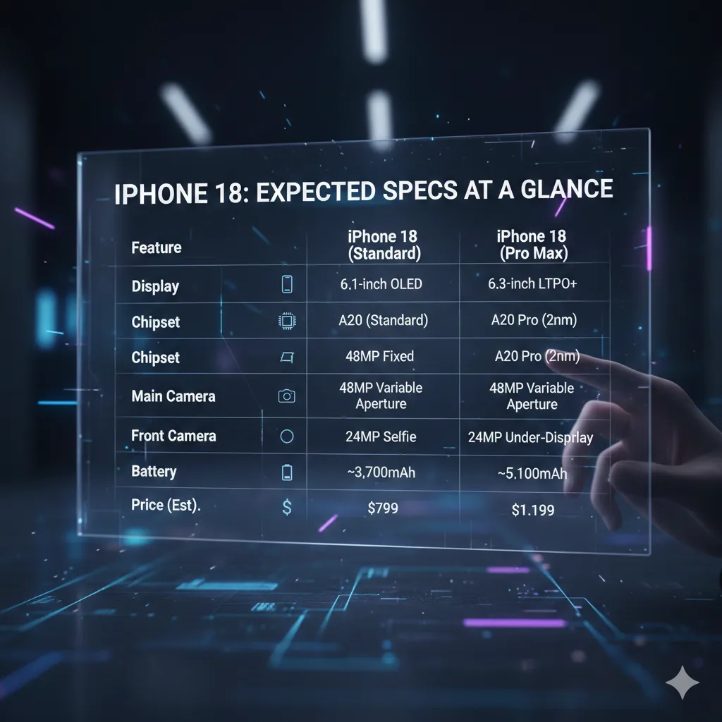If design is the body, the A20 chip is the soul. The iPhone 18 Pro is expected to debut the world’s first mobile processor built on TSMC’s 2nm process.