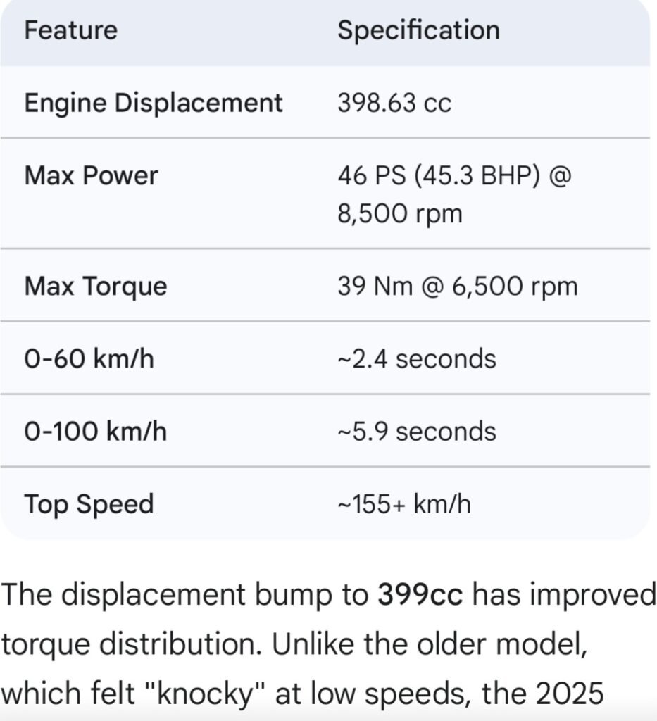 2. Engine and Performance: The 399cc Beast