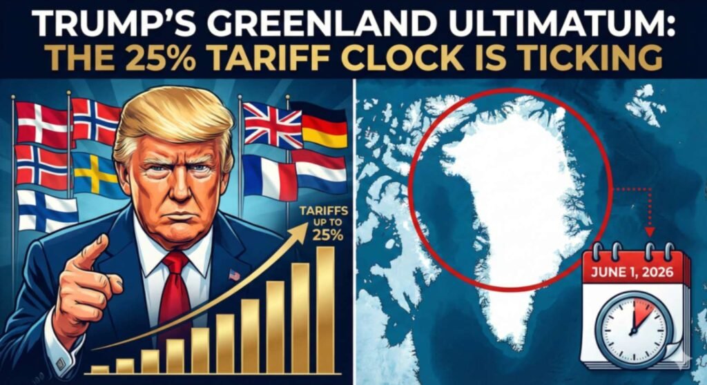 25% Tariffs on 8 Nations. In a move that has sent shockwaves through the global economy and NATO alliance, US President Donald Trump has issued a stark ultimatum to Europe. In a bid to secure the purchase of Greenland, the President has threatened to impose escalating tariffs on eight key European nations, culminating in a 25% levy if an agreement is not reached by June 1, 2026.