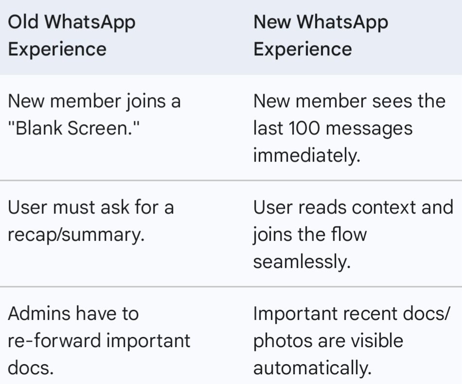 Unlike Telegram, where history sharing is often a global group setting, WhatsApp’s approach is granular and user-controlled.